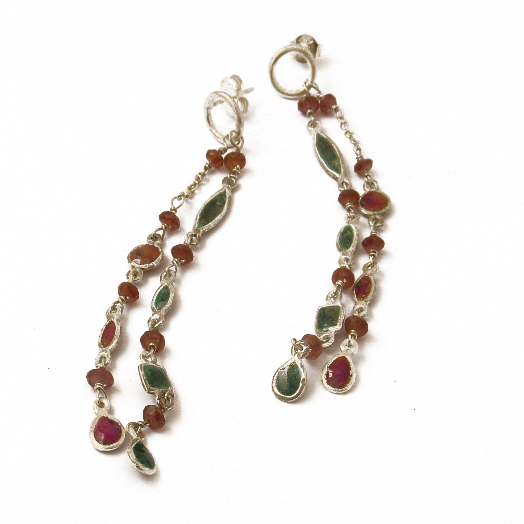 Each piece in the collection is hand-crafted and made out of silver 925, gold 750 and leather. The gems are precious and semi-precoius.